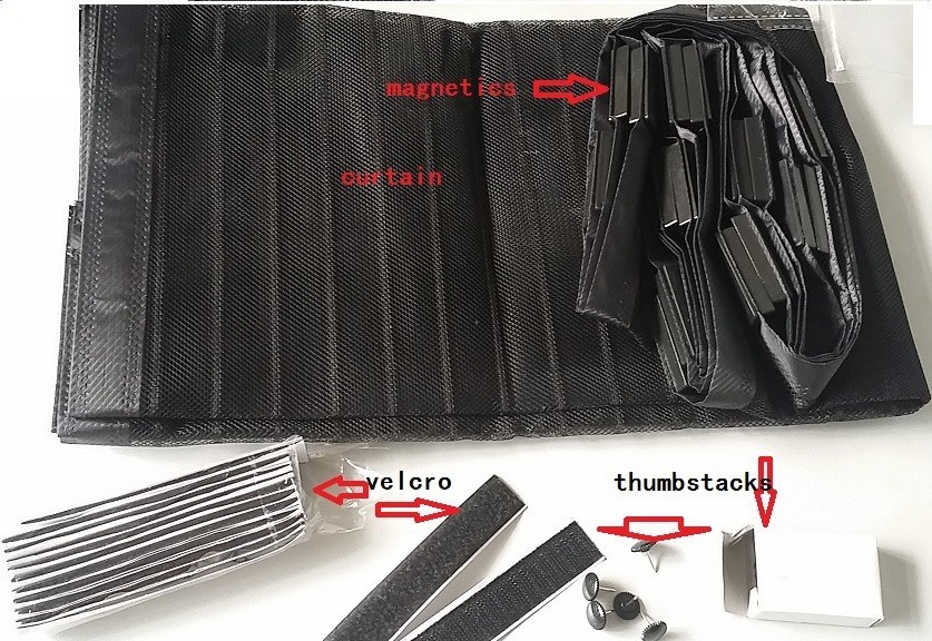 Colocamos para si o gancho de velcro com cola na parte de trás que o ajuda a pendurar na cortina da porta, e com a cortina da porta, há uma volta do loop de velcro costurado,que pode fixar a fixação no quadro da porta, uso duradouro.